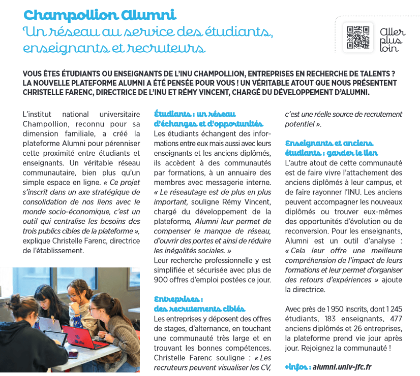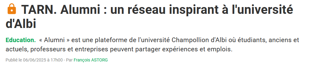 Après Albi Mag en mai dernier puis le Tarn Libre et La Dépêche en juin, c'est à présent Grand A, le magazine du Grand Albigeois, qui publie un article sur le lancement de notre réseau alumni.